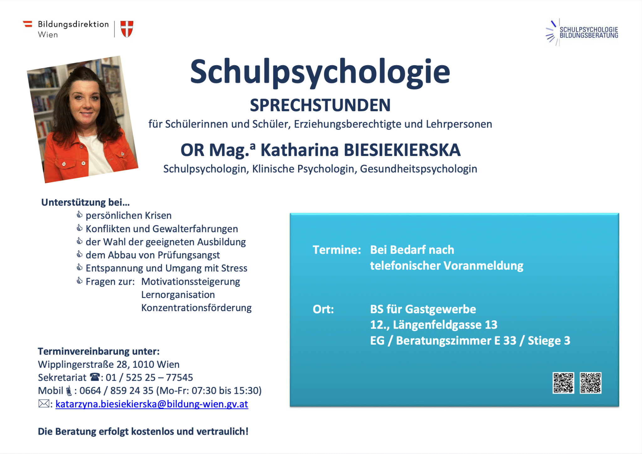 Bitte vereinbaren Sie einen Termin für eine Beratungsstunde direkt mit den Lehrpersonen.